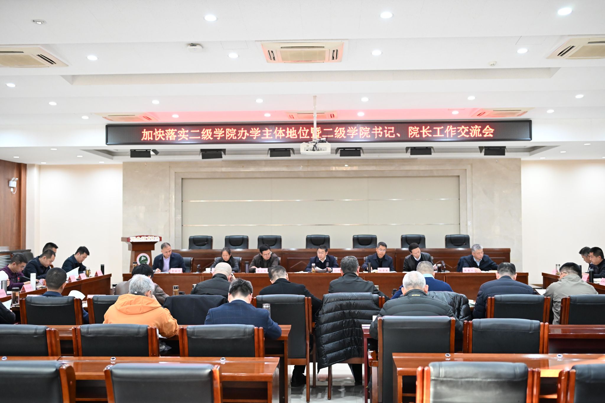 会上,发展规划处介绍了《关于加快落实二级学院办学主体地位的若干措施(征求意见稿)》主要内容,各二级学院负责人在交流发言中围绕校院两级管理运行中的堵点难点和希望学校支持保障事项进行了汇报,并通过谋划“十五五”发展,清晰阐述了下一步发展思路与重点突破方向。校领导、相关职能处室负责人对有关工作进行了说明,强调要科学厘清校院两级权责边界,推动实现权责利相统一,确保二级学院办学主体权接得稳、用得好。