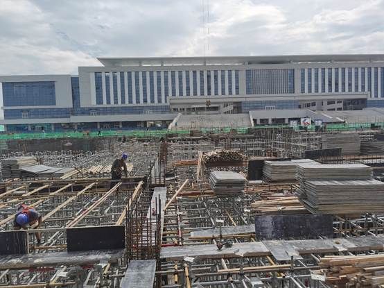 当前北区1 段负一层顶板框架梁模板支设已完成 10%,施工人员在高温下精准校准模板位置,确保每一处节点符合工程标准;2 段负一层顶板框架梁模板支设完成 5%,钢筋与模板交织的施工现场,工人师傅们挥汗如雨仍坚守作业。其中进度领先的 2 段负一层挡土墙、内墙钢筋绑扎工作已完成 90%,纵横交错的钢筋骨架在阳光下泛着金属光泽,为墙体结构筑牢根基。