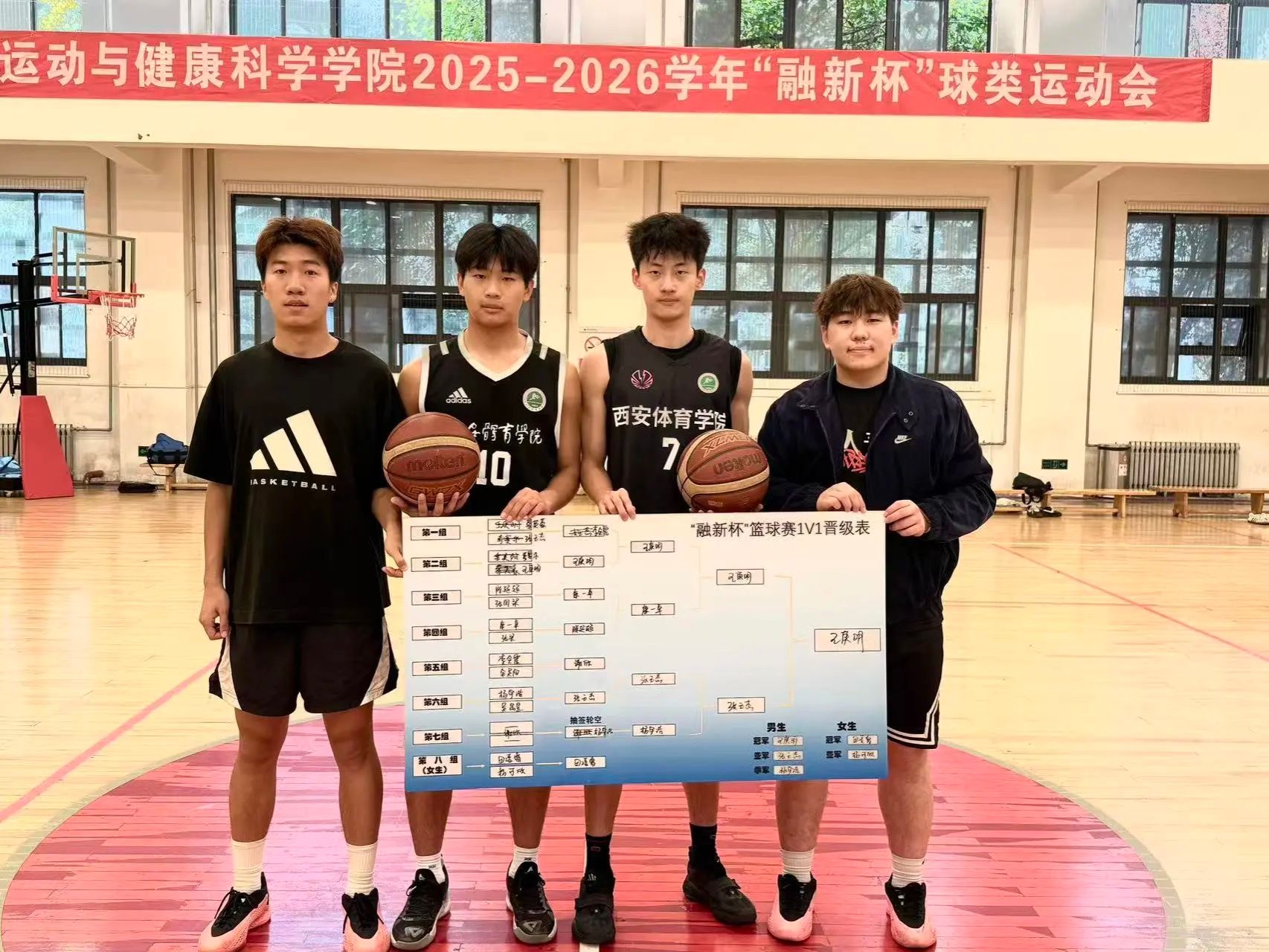 作为融新杯系列活动的重要组成部分,本次1v1篮球挑战赛不仅为学院篮球爱好者提供了交流竞技的平台,更呼应了运动与健康科学学院的专业特色。赛场上,选手们展现的不仅是精湛的球技,更是坚持锻炼、追求健康的生活态度;每一次奔跑、跳跃与拼搏,都诠释了“文明其精神,野蛮其体魄”的深刻内涵,也传递了积极向上、永不言弃的青春正能量。