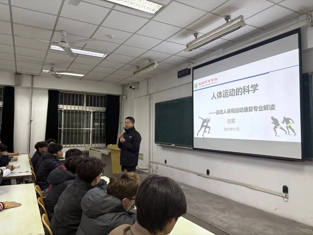 为帮助2025级新生更好地了解专业发展方向,明确学习目标,运动与健康科学学院特别推出“2025级新生专业教育系列讲座”系列讲座。本次讲座旨在搭建师生交流平台,促进新生对运动人体科学专业的认知与认同,助力同学们顺利开启大学学习生涯。2025级运动康复专业及运动人体科学专业全体学生参与了本次讲座。