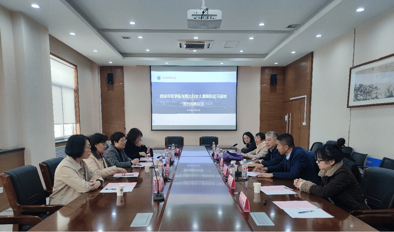 11月18日上午,西安体育学院与西北妇女儿童医院实习基地签约暨授牌仪式在我校举行。西北妇女儿童医院党委副书记马西一行 5 人应邀到访,我校副校长张葆欣出席会议并代表学校致辞、签约及授牌。运动与健康科学学院相关人员参加仪式,仪式由院长刘军主持。