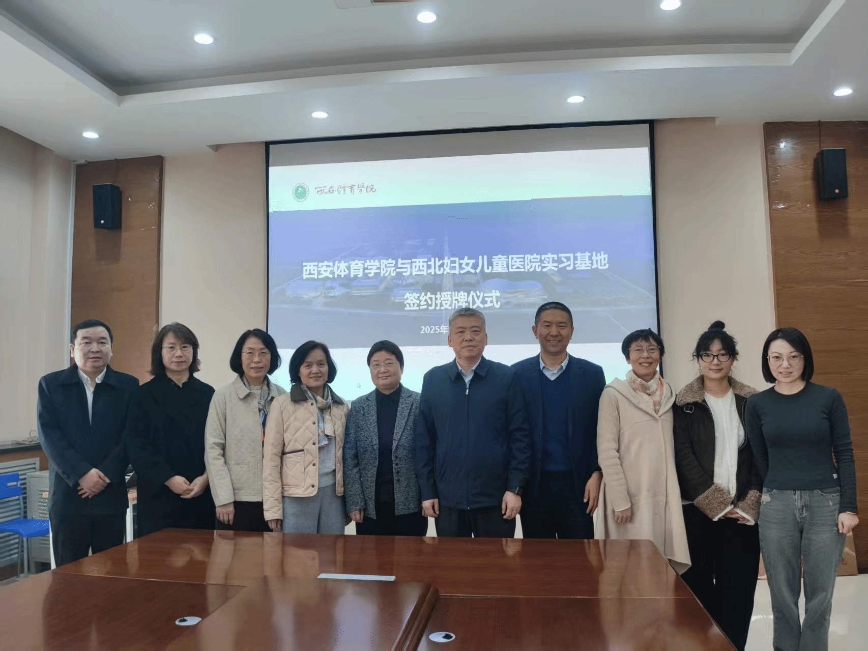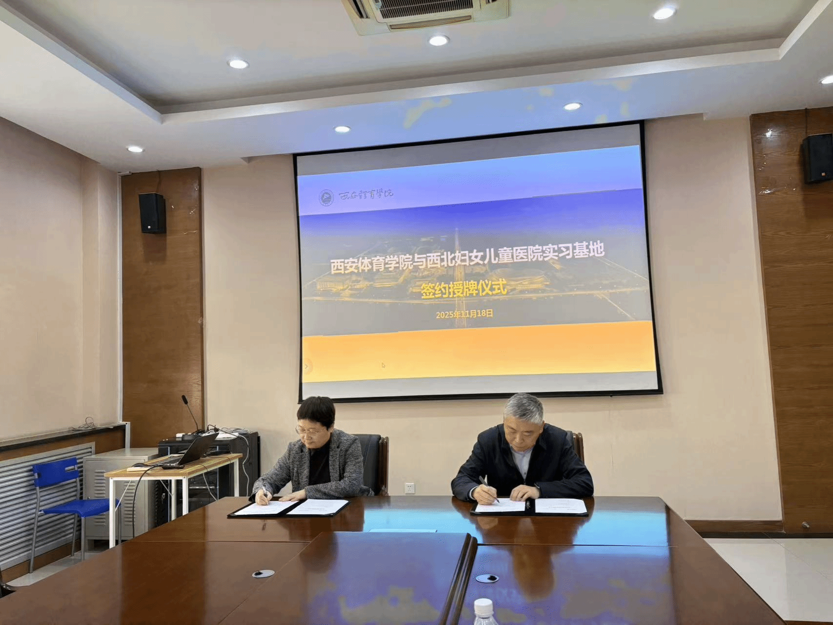 随后,双方共同签署《西安体育学院实习基地合作框架协议书》,张葆欣副校长代表学校向西北妇女儿童医院授牌,马西副书记代表医院接牌。
