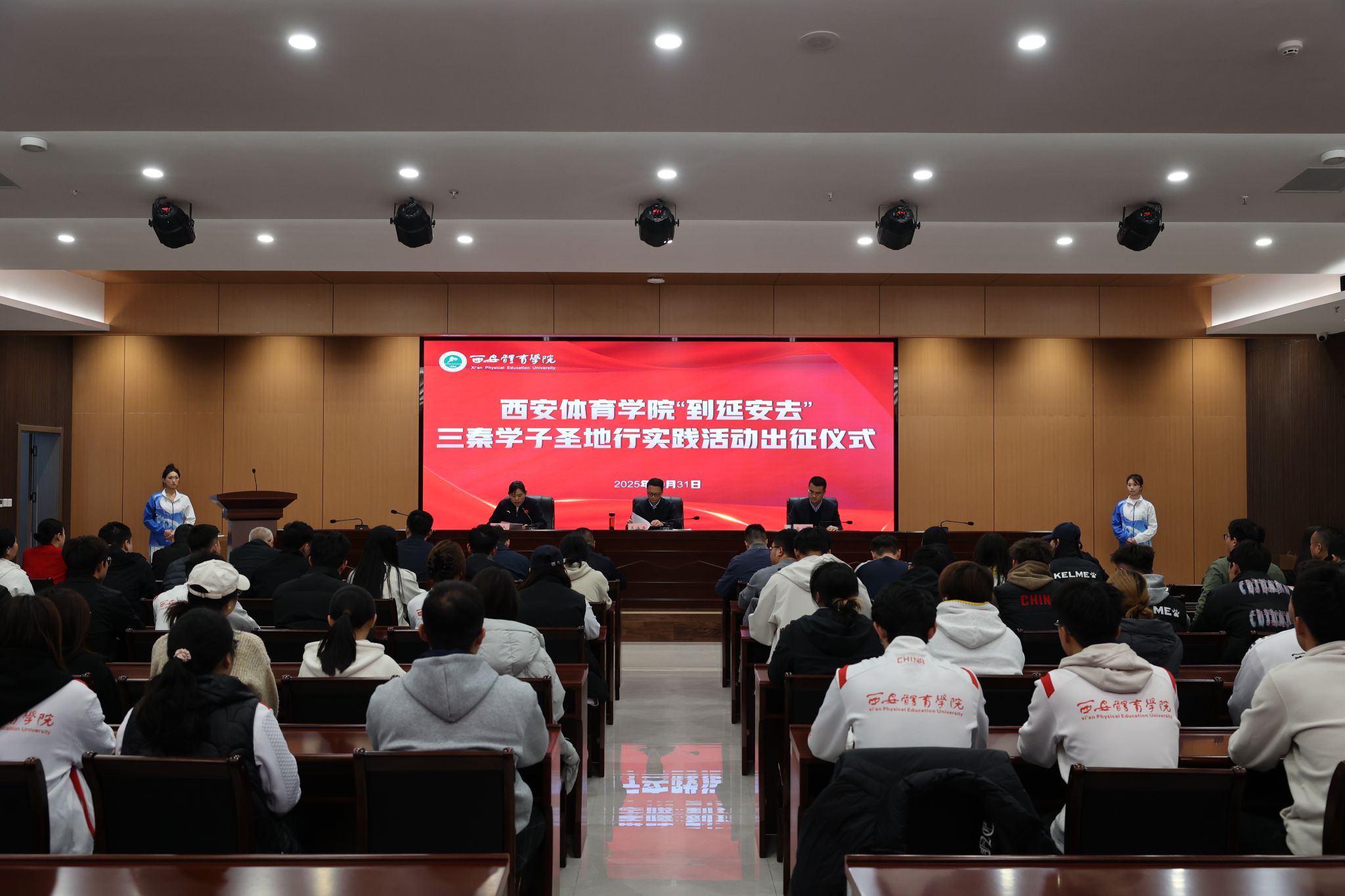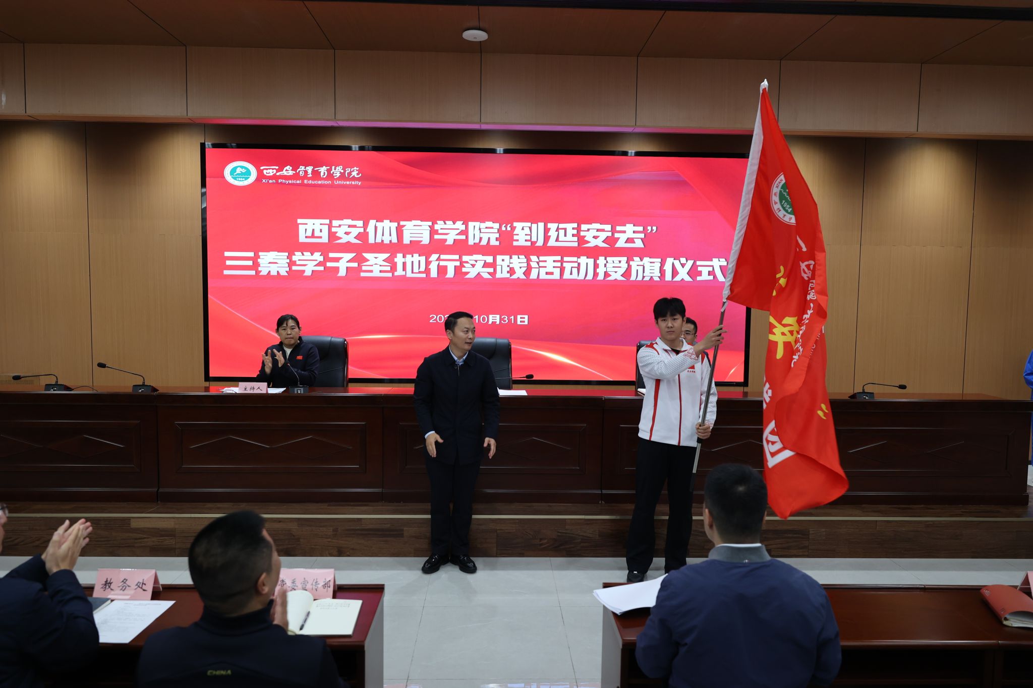 10月31日,“到延安去”・三秦学子圣地行实践活动出征仪式在鄠邑校区行政楼541举行,校党委副书记马海涛副出席出征仪式,马书记就何为延安精神为同学们做了深度解读,强调了“到延安去”实践活动的重要性,分享了感悟,并对做好我校到延安去实践活动提了三点要求:一是深刻理解为什么到延安去;二是到延安去给学生能带来什么;三是延安行要做到三个实处,即“带着思考去,带着敬畏去看,带着责任去做。”他对同学们寄予了殷切期望,鼓励大家在活动中汲取奋进力量,并为实践团授旗。学工部部长马国华宣读《西安体育学院关于开展“到延安去”·三秦学子圣地行活动的工作方案》;马克思主义学院教师孙赵璇,体育教育训练学院研究生努尔比耶·吾拉依木分别作为教师代表、学生代表发言。参与师生怀着激动的心情,正式开启延安红色实践之旅。
